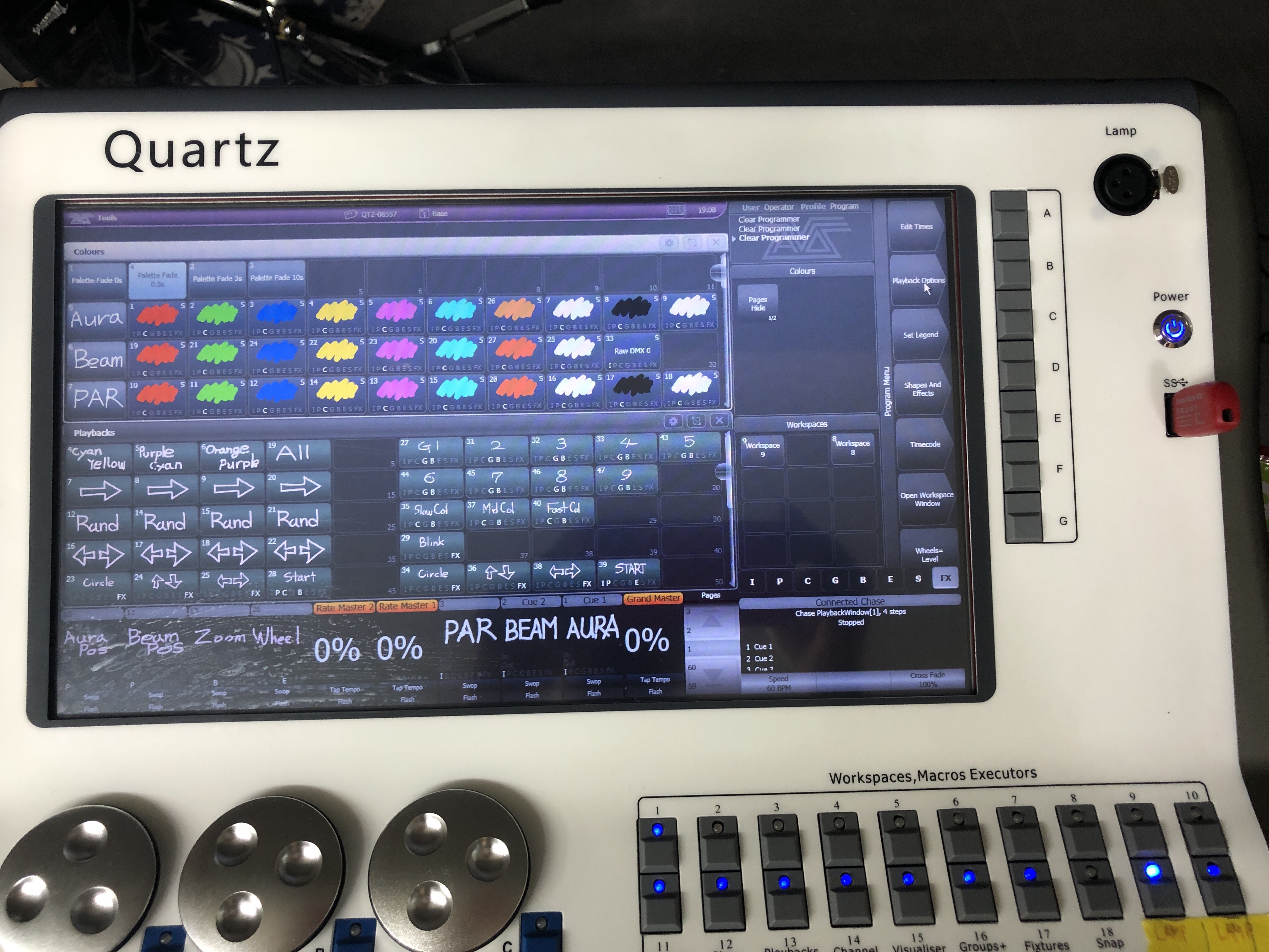 바쁜 7월 일정속에서 경기도 화성에서 출장 조명교육요청이 와서 가보게 되었다. 음향 PA 시스템을 판매하시면서 음향렌탈도 하시는 분이셨는데 이번에 Avolites Quartz와 조명기 여러대를 구매하시면서 간단한 조명렌탈도 직접하실 예정이시라고 하셨다. 원래 기본 콘솔 교육일정을 이틀을 잡고 있는데 연세도(?) 있으시고 비용도 줄일겸 하루만에 끝내달라고 하셔서 조명프로그래밍 자체보다는 렌탈나가셔서 바로 노래에 맞는 조명 오퍼를 하실수 있게 프로그래밍 해드리고 조명오퍼하는 방법 위주로 교육을 진행했다. (어떻게 보면 이게 많은 분들께 정답일 수도 있겠다 싶었다.)
