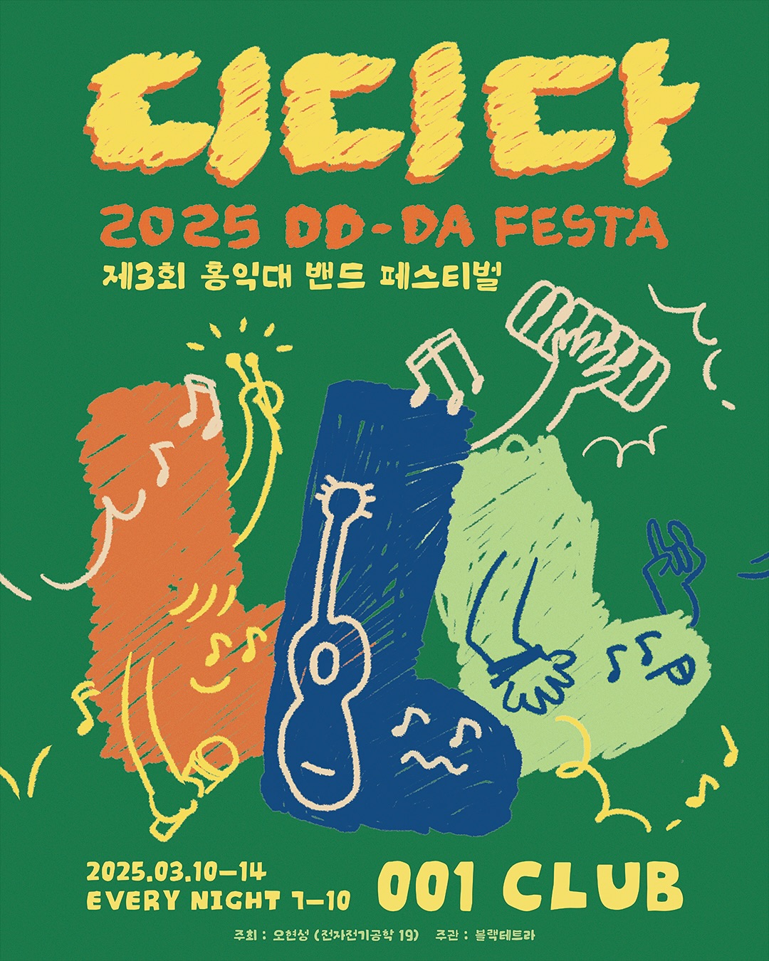 | 제3회 홍익대 밴드 페스티벌 디디다 3일차 (품바21, 공연예술학부, 스튜디오에이, 이공실) (0) | 2025.03.12 |