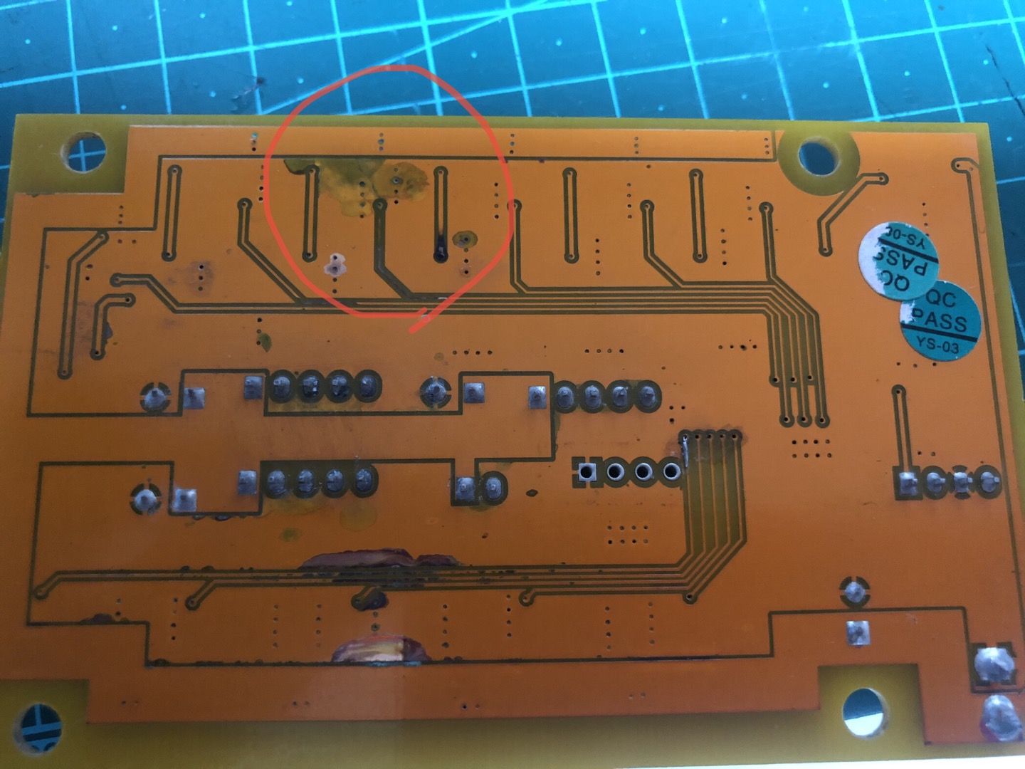 음... 뭔가 바로 될 줄 알았는데 다시 테스트 해보니 전과 같이 센터쪽 Red led에 불이 들어오지 않는다. 도무지 감을 잡을 수 없어서 전기전자쪽 관련 카페에 질문을 올려보니 누군가 패턴이 탄거 같다고 패턴을 이어보고 도통테스트를 해보라는 조언이 있었다.