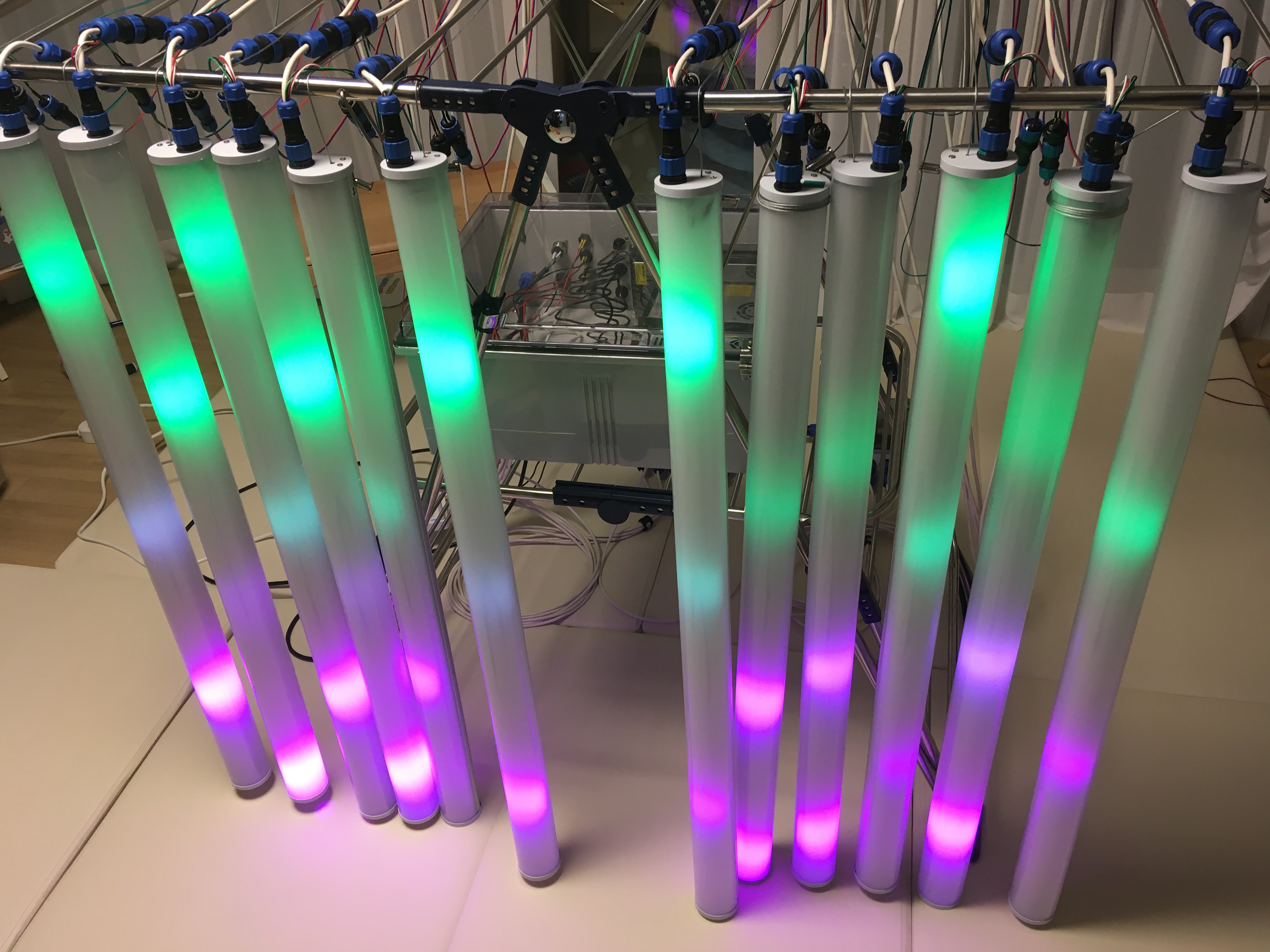 현재 공공일에서 이 튜브들은 Resolume가 아닌 Avolites Titan T2에 연결해 사용중이다. Resolume를 안정적으로 사용하려면 2대의 PC를 사용해야하는데 좁은 공간에 PC 2대와 Resolume를 컨트롤하는 미디컨트롤러까지 셋팅하기가 너무 버거워서 그냥 T2를 이용해 한대의 PC로 기존 조명과 LED 튜브를 같이 컨트롤하고 있다.